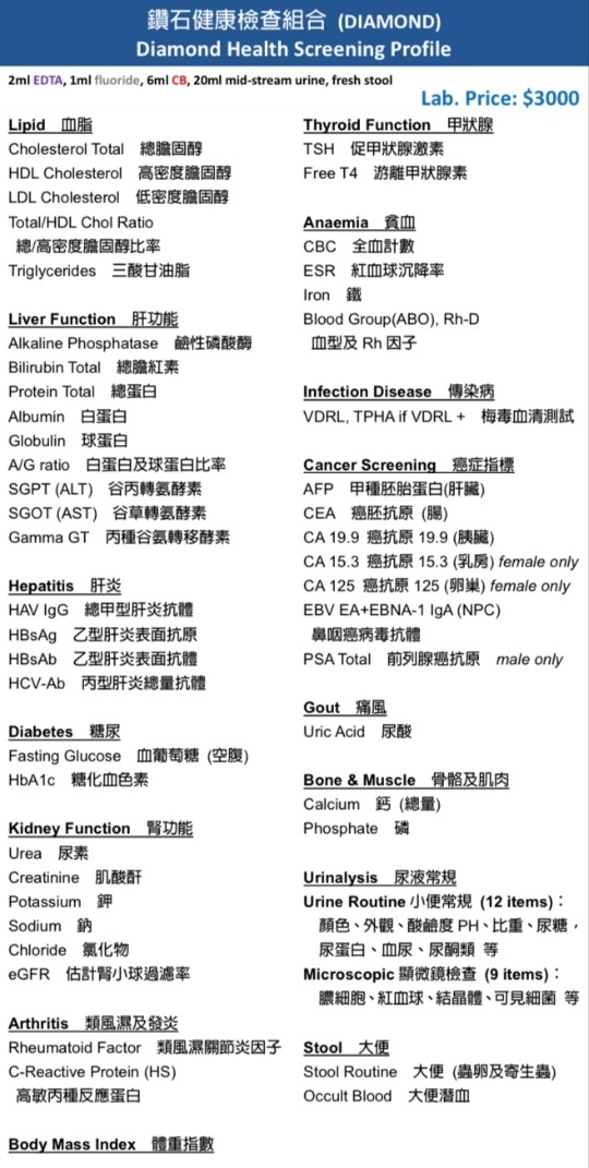 以上檢查計劃價錢未包括醫生解釋報告之費用。